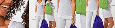 210-denier nylon polyurethane • color-matched DURAstring® drawstring • matching metal grommets • 8" diameter max. imprint/embroidery area • Size: 14"w x 18"h