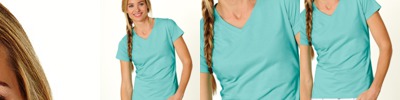 100% combed ring-spun cotton jersey • 5.5-oz. • top-stitched ribbed v-neck collar • taped neck • double-needle hemmed sleeves and bottom • softly shaped for a classic feminine fit • white is sewn with 100% cotton thread • Sizes: S-3XL