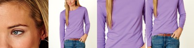 100% combed ring-spun cotton jersey • 5.5-oz. • top-stitched ribbed collar • taped neck • double-needle hemmed sleeves and bottom • softly shaped for a classic feminine fit • white is sewn with 100% cotton thread • Sizes: S-2XL, selected colors up to 3XL