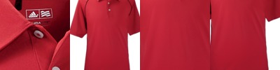 100% lightweight polyester pique knit • 5.2-oz. • moisture-wicking finish • self-fabric collar • contrast piping on raglan open-hem sleeves • side seams • open-bottom hem • contrast Adidas logo on back neck • ClimaLite heat seal logo at left hip • Sizes: S-3XL