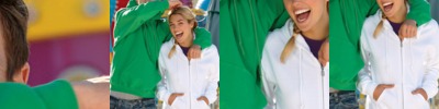 55% cotton/39% polyester/6% rayon • 7.5 oz. • coverstitched throughout • contrast hood and sleeves • front pouch pocket • Sizes: S-2XL