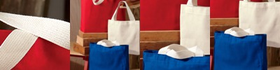 65% polyester/35% cotton twill • made in the USA • 7-oz. • 100% cotton web handles (color: natural) reinforced at stress points • 10" diameter imprint area • Sizes: 12.5"w x 13.5"h
