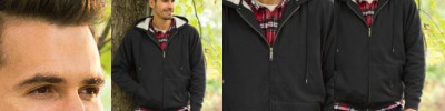 80% cotton/20% polyester heavyweight fleece shell (8.2-oz.) • 100% polyester micro-Sherpa lining (6.7-oz.) in body and 3-piece hood • nylon sleeve lining • antique zipper with durable pull • rib-knit sleeve cuffs and bottom • pouch pocket • Sizes: S-3XL