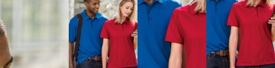 now available in 2XL • preshrunk 65% polyester/35% cotton jersey • 3.7-oz. • 30 singles for extreme softness • front cover-stitched 1x1 baby rib-knit set-in collar • satin label • Sizes: S-2XL