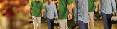 100% ripstop polyester • 2.2 oz. • shield+ fabric protector repels water and oil-based stains • UPF 40+ sun protection blocks 97.5% of harmful UV rays • vented back with mesh lining • industrial strength heat-resistant buttons • convertible sleeves • Sizes: S-3XL