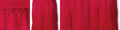 100% polyester interlock • 4-oz. • moisture wicking • odor resistant • stain release • ultra tight knit resists snagging • 1½" Covered waist band • Sizes: S-3XL