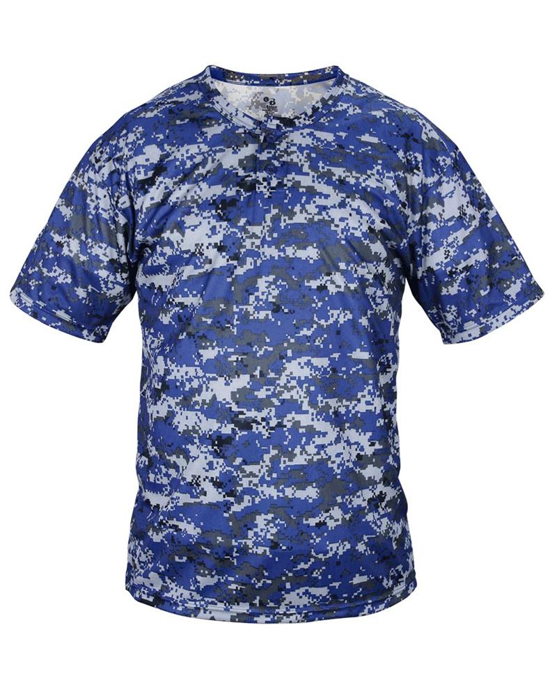 100% polyester moisture-management antimicrobial performance fabric • 3.5-oz. • sublimated digital side & sleeve panel inserts • Self-fabric collar • Double needle hem • Badger heat seal logo on left sleeve • Sizes: XS-L, see colors
