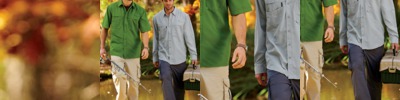 now available up to 4XL • easy care 60% cotton/40% polyester • 3.3-oz. • wrinkle-free • stain and soil repellant • top fused center placket • collar and cuffs • single-needle armholes • double-needle side-seam stitching • dyed-to-match buttons • button-down collar • left-chest pocket • lightweight • Sizes: S-4XL