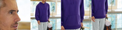 100% polyester • 7.5-oz. • moisture-management fabric • paneled shoulder for maximum movement • textured waffle-weave side and underarm panels • front pouch pocket with head set opening and two self-adhesive closure top pockets • hood draw-cord • ribbed cuffs and waistband • left-sleeve embroidered logo • Sizes: XS-4XL