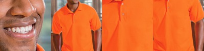 100% polyester interlock • 4 oz. • moisture-wicking • odor- and stain-resistant • three-button placket • Sizes: S-3XL