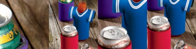 elite 3 mm neoprene • collapsible • insulates 12-oz. cans and bottles • Sizes: 4"w x 5"h