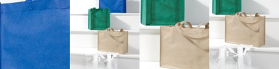 non-woven polypropylene • two closures • extra large storage capacity • 12"w x 13"h approx. imprint area • 30" handles • Size: 20"w x 16"h x 5"d
