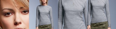 preshrunk 65% polyester/35% cotton jersey • 3.7-oz. • 30 singles for extreme softness • 1x1 baby rib-knit binding • satin label • Sizes: S-2XL