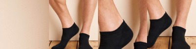 white with grey heel and toe: 66% cotton/32% polyester/1% nylon/1% spandex • black: 76% cotton/1% polyester/22% nylon/1% spandex • moisture-wicking • cushion sole • sold in 6-pair packs • Sizes: sock sizes 10-13