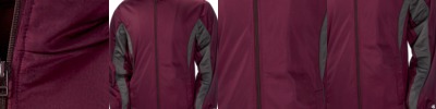 100% brushed tricot polyester • front and back contrast inserts with piping • open bottom with bungee cord and toggles • two front pockets • covered elastic cuffs • embroidered Badger logo on left sleeve • Sizes: S-L