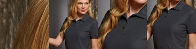 60% cotton/40% polyester piqué • 5 oz. • biopolish with silicone finish • feminine fit • flat-knit collar and cuffs • 3-button placket with dyed-to-match buttons • neck tape • double-needle shoulders • armholes • cuffs and bottom hems • side vents • Sizes: S-3XL