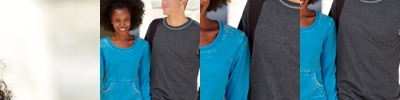 100% cotton • 6.25-oz. • contrast flatlock stitching • 2x1 rib-knit collar and cuffs • contoured bottom waist hem • Sizes: S-3XL