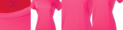 100% polyester • 4-oz. • moisture-wicking • snag-resistant • feminine cut and fit • double-needle stitched crew neck • open cuffs and hem • tagless • Sizes: XS-3XL