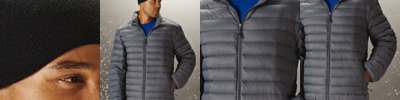 100% high density nylon • 90% duck down/10% feather filling • water- and wind-resistant • full-zip front placket with stand-up collar • elastic windproof cuffs • front pockets with side entry • interior pockets • folds and stows into separate pouch • Sizes: S-3XL