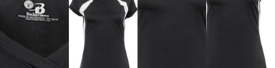100% moisture management and antimicrobial fabric • contrast side panels • self -fabric collar • sleeveless lap v-neck • contour silhouette • double needle hem with tack • Badger heat seal logo on left sleeve • Sizes: S-L