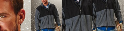100% polyester Therma® no-pill fleece shell • 8.6 oz. • water-resistant 100% nylon taslan across shoulders and front chest • left chest and back yoke interior Lining Saver Systems™ • full-zip front • black nylon cuffs and waistband trim • adjustable waistband with cord locks • zippered pocket on right chest • zippered slash pockets • Sizes: S-3XL