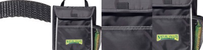 210-denier polyester • PVC- and phthalate-free • PEVA lining and PU fabric backing • 5-can capacity • mesh side pocket • self-adhesive closure • top grab handle • heat-sealed interior • CPSIA compliant • 4"w x 3 1/2"h front pocket center imprint area • 2 1/2"w x 1 1/2"h max. front pocket center embroidery area • 3"w x 3 1/2"h approx. front pocket center heat transfer area • Sizes: 4"w x 9"h x 7 3/4"L