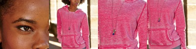 55% cotton/45% polyester burnout fleece fabric • 7-oz. • acid washed with silicone finish • cut-open neck detail • flat-lock stitching throughout • extra long cuffs • Sizes: S-2XL