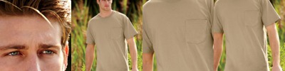 preshrunk 50% cotton/50% polyester jersey • 5.6-oz. • seamless body with set-in sleeves • 5-point left chest pocket • 1x1 seamless ribbed crewneck collar • double-needle coverstitched neck • shoulder-to-shoulder taping • double-needle sleeves and bottom hems • Sizes: S-3XL