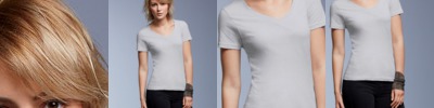preshrunk 100% cotton jersey • 4.7 oz. • breathable and lightweight fabric with superior softness • slightly contoured contemporary junior silhouette with side seams • self-fabric mitered v-neck collar with single-needle cover-stitching • feminine cap sleeves • double-needle sleeve and bottom hems • tear-away label • Sizes: S-3XL