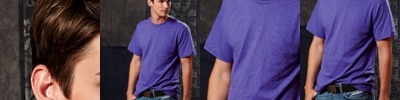 100% combed ring-spun cotton jersey • 4.5-oz. • top-stitched ribbed collar • taped neck with EasyTearTM label • double-needle hemmed sleeves and bottom • white is sewn with 100% cotton thread • Sizes: S-2XL