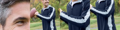 55% Cotton/39% Polyester/6% Rayon Fleece Fabric • 7.5-Oz. • Off-White Drawcords And Zipper Tape • Cover-Stitched Throughout • Rib-Knit Cuffs And Waistband • Front Pouch Pockets • Sizes: S-2XL
