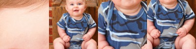 100% combed ringspun cotton print 1x1 baby rib • 5.3-oz. • 2% of all Code V sales are donated to Children of Fallen Soldiers Relief Fund, Inc. and Fisher House™ • flatlock seams • double-needle ribbed binding on neck, shoulders, sleeves and leg opening • Reinforced three snap closure • bleed-resistant ink is recommended when printing our camouflage products • Sizes: newborn; 6; 12; or 18 months